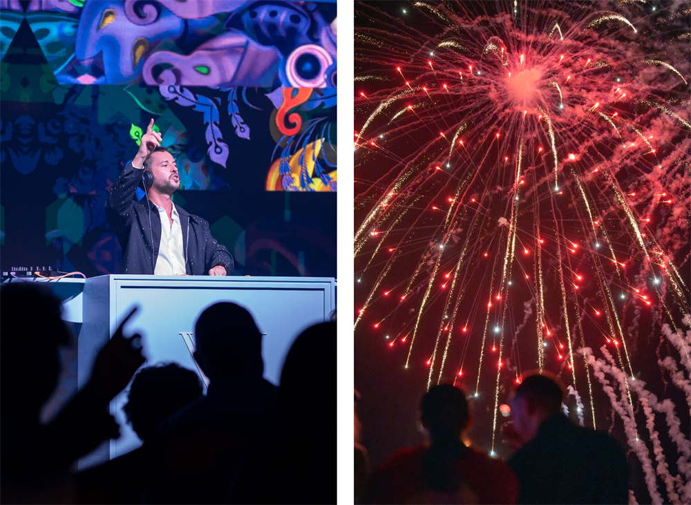 随着庆典的深入,岛屿被节日的金色光辉所包裹:冬至派对于星空下燃起火焰与音乐的热情,金色火焰跳跃成夜空的节奏;跨年夜幻彩秀更将整座岛屿推向高潮,来自世界各地的表演者在海浪与烟花的光影间翩然登场——金色光雨洒落的瞬间,2026年的新篇章由此闪耀开启。