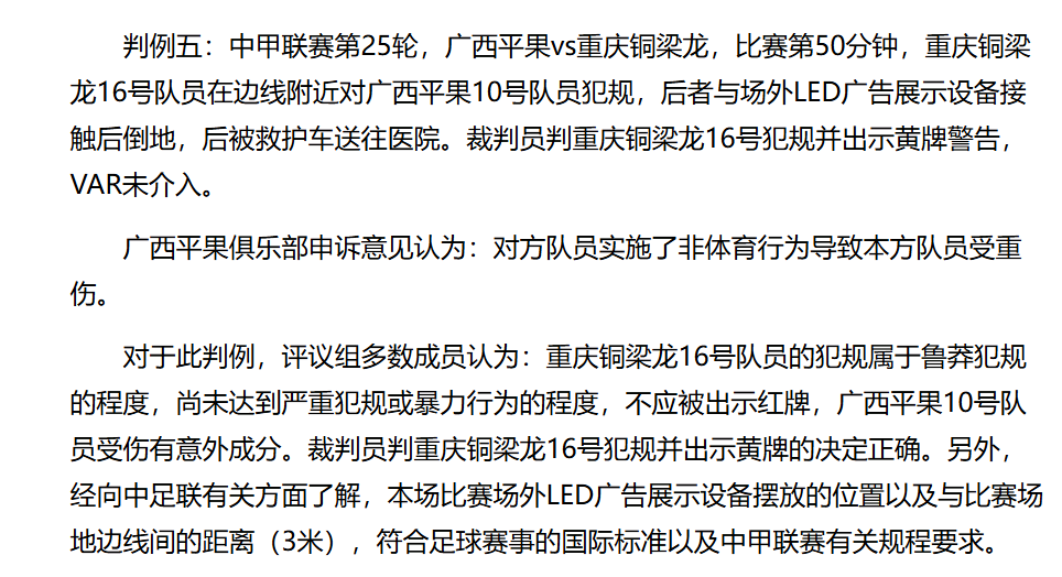 评议组多数成员认为,张志雄的犯规“属于鲁莽犯规,但尚未达到严重犯规或暴力行为的程度,不应被出示红牌”。